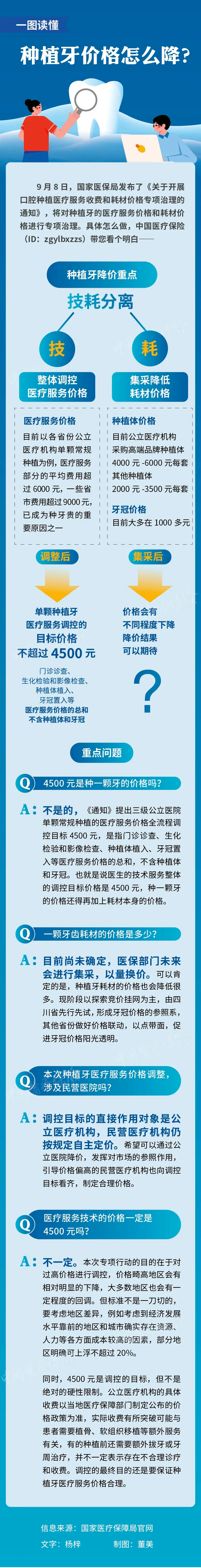 對于廣大患者關(guān)注的事,以后種一顆牙要花多少錢,需要綜合考慮醫(yī)療服務(wù)價格和耗材價格兩方面。根據(jù)醫(yī)保局今年發(fā)布的《關(guān)于開展口腔種植醫(yī)療服務(wù)收費和耗材價格專項治理的通知》,每顆種植牙的醫(yī)療服務(wù)費用調(diào)控目標在4500元。當然4500元的價格并不是“一刀切”的標準,根據(jù)醫(yī)療服務(wù)的難度和各地的情況可能會有所不同。因此,患者種一顆牙到底降價多少,需要等待種植牙耗材集采結(jié)果出爐,兩相結(jié)合得出答案。