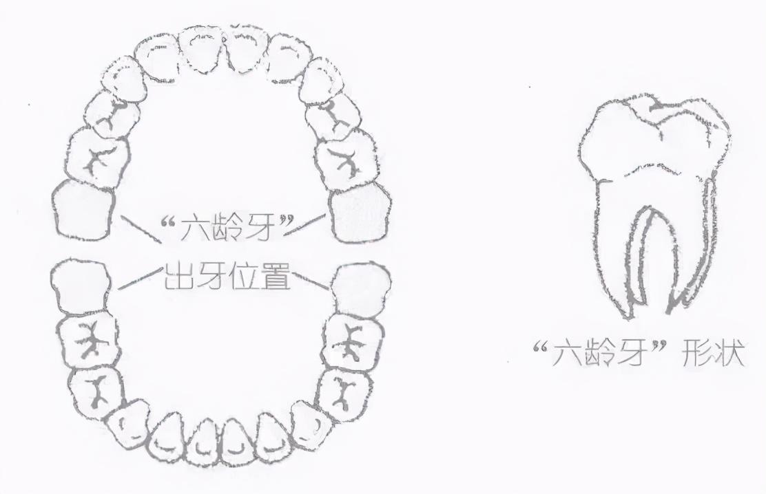 六齡齒的牙齒是第一個(gè)剛萌發(fā)的恒牙,用通俗的話來(lái)說(shuō),恒牙就是我們咀嚼食物的大牙齒。 同時(shí),它也是口腔中咀嚼有的一顆牙齒。這顆牙齒可以承受超過(guò)60%的咀嚼壓力,這重要,父母必須注意這一點(diǎn)。(見(jiàn)下圖:六齡牙)