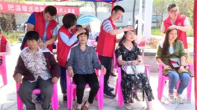 武漢市勞模、美志愿者、國(guó)際美發(fā)大獎(jiǎng)獲得者、殘疾人美發(fā)師宋忠橋帶領(lǐng)殘疾人義工為市民免費(fèi)理發(fā)、盲人按摩,用掌握的技能回饋社會(huì)。