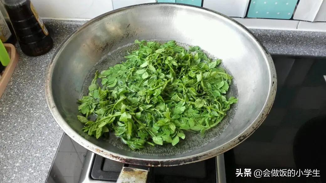 第一步:準(zhǔn)備剛摘好 的花椒芽,洗凈摘去壞葉