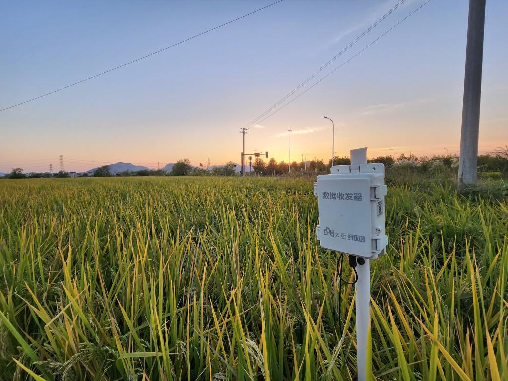 蕪湖三山經濟開發(fā)區(qū)一處稻田里的數(shù)據(jù)收發(fā)器。新華社記者 趙金正 攝