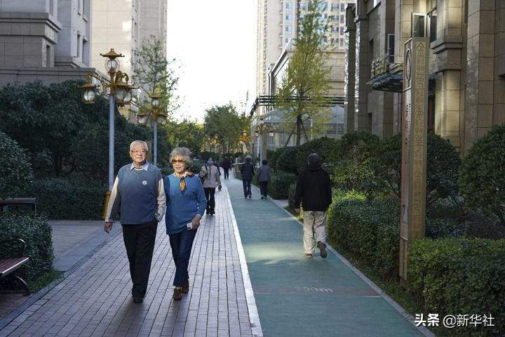 在位于河北燕郊的燕達(dá)金色年華健康養(yǎng)護(hù)中心,從北京來(lái)養(yǎng)老的呂偉業(yè)(左)和李戰(zhàn)平在散步(2021年10月11日攝)。新華社記者 彭子洋 攝