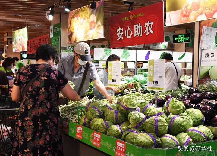 在位于北京市海淀區(qū)的超市發(fā)雙榆樹(shù)店,市民在挑選產(chǎn)自河北省張家口市赤城縣的蔬菜(2020年7月23日攝)。新華社記者 任超 攝