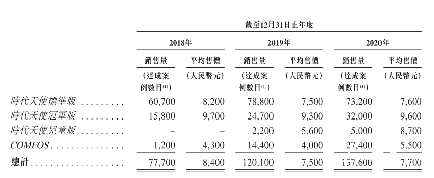 截至目前,時(shí)代天使分別推出了標(biāo)準(zhǔn)版(現(xiàn)已升級成經(jīng)典版)、版、兒童版和COMFOS等4款產(chǎn)品。招股書顯示,該4款產(chǎn)品2020年的平均售價(jià)分別為7600元、9600元、8700元和5500元。安信證券研報(bào)指出,上述4種產(chǎn)品的建議零售價(jià)分別為3.2萬元、4萬元、2.6萬元和2.4萬元。據(jù)媒體報(bào)道,今年以來,隱適美為搶奪市場份額開始降價(jià)促銷。4月,隱適美再次調(diào)低產(chǎn)品售價(jià),終端消費(fèi)價(jià)低降至2.5萬元左右的水平。
