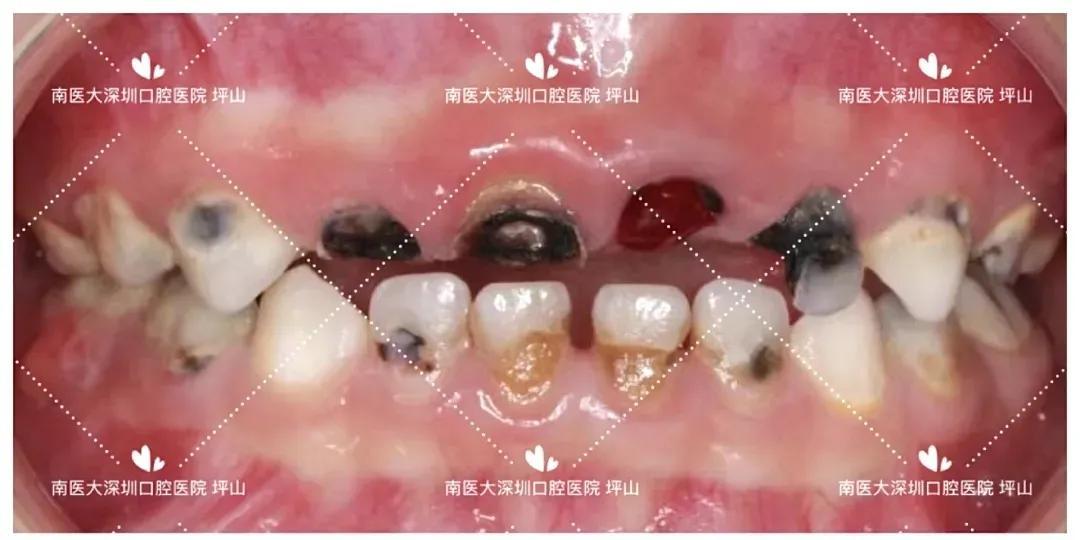 一位4歲的小男孩,20顆乳牙都爛了,有的還變成了“大黑洞”。