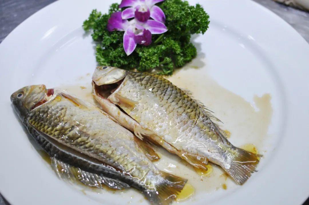 俗話說,靠山吃山靠水吃水。自古以來,阜南縣曹集鎮(zhèn)人民以魚為生,他們住在淮河的岸邊,千里淮河在這里自然彎成W型。灣多則水緩,水緩則魚眾。其中鯽魚當(dāng)之無(wú)愧的魚中寵兒。曹集人擅長(zhǎng)做各種魚宴,鹵鯽魚就是當(dāng)?shù)啬信仙賽鄢缘囊坏啦?。阜南淮河魚館烹制的鹵鯽魚更是其中的佼佼者。2017年,淮河魚館掌勺人張保紅精制的“鹵鯽魚”,入選首批“來安徽旅游不得不吃的皖菜”名錄。