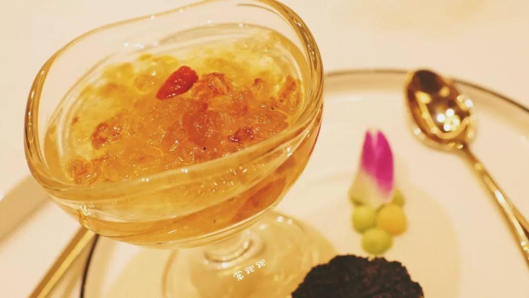 對于女士來說,還推薦一道桃膠芝麻核桃糕。鳳凰桃膠加銀耳汁、酒釀?wù){(diào)勻,配烤制成熟的核桃芝麻糕裝盤,搭配著吃,既解了核桃芝麻糕的干,又中和了桃膠的微甜,絕了!