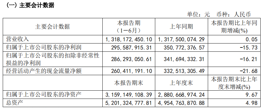 分季度來看,公司第二季度實(shí)現(xiàn)營(yíng)收6.64億元,同比減少3.34%;實(shí)現(xiàn)凈利潤(rùn)1.29億元,同比減少30.72%,二季度營(yíng)收凈利雙降。