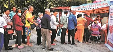 春芽醫(yī)護(hù)人員走進(jìn)社區(qū)為市民做免費(fèi)口腔檢查。