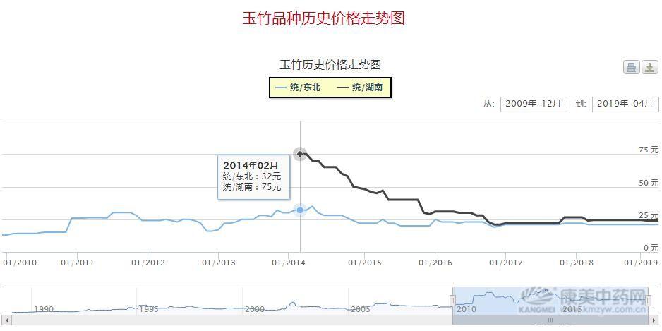 2010年玉竹行情上漲,到2011年4月湘玉竹價格已上升至45元左右,此價位一直持續(xù)到2012年底;2013年湘玉竹價格進(jìn)一步上揚(yáng),漲至85元的歷史高價。從2010年開始,連續(xù)3年的高價,刺激藥農(nóng)進(jìn)行大面積種植,使得產(chǎn)量增長供大于求;2014年底,行情開始逐步下走。2017年湘玉竹價格僅維持在20元上下。按經(jīng)濟(jì)收益來算,產(chǎn)區(qū)農(nóng)戶種植益大大折扣。連續(xù)幾年低價,藥農(nóng)疏于管理,湘玉竹出現(xiàn)黃葉、死苗現(xiàn)象;2018年玉竹在地面積與盛期相比,減少三分之一左右,2019年的種植面積估計會更少,而采挖成本高,價格上不去,許多商家和農(nóng)戶都在觀望中。玉竹當(dāng)前經(jīng)濟(jì)益分析