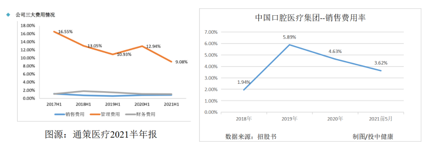 這兩者除了都在浙江起家外,起名也是相同套路。在命名上,都是以當(dāng)?shù)孛Q為首后加上口腔醫(yī)院等,例如通策的“杭州口腔醫(yī)院”、中國(guó)口腔醫(yī)療集團(tuán)的“溫州鹿城口腔醫(yī)院”,以當(dāng)?shù)爻鞘忻目谇会t(yī)院會(huì)給人一種強(qiáng)的“公立醫(yī)院”的感覺,讓公立醫(yī)院間接為其背書,在營(yíng)銷層面,節(jié)省了開支,為通策醫(yī)療不足1%的銷售費(fèi)用率打下了基礎(chǔ),中國(guó)口腔醫(yī)療集團(tuán)則略遜一籌。