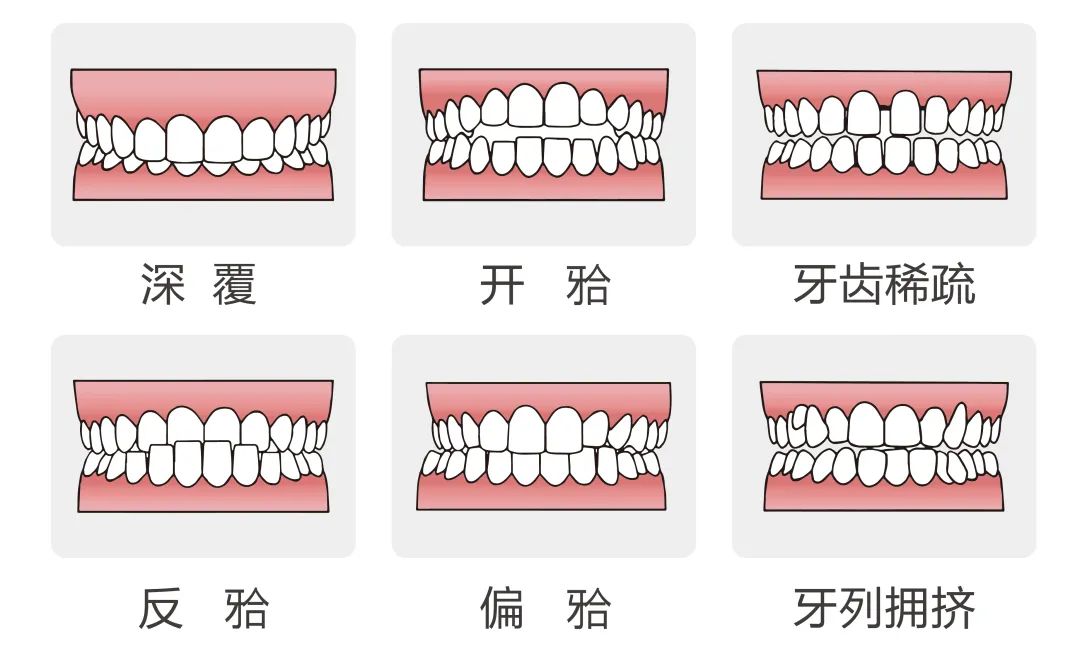 在此提醒家長如發(fā)現(xiàn)孩子有以下幾種牙頜畸形或異常問題,建議盡早檢查,盡早處理。