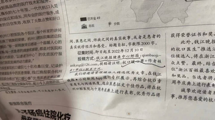 來(lái)稿請(qǐng)發(fā)郵件:qianbaojiankang@126.com,征集截至2022年12月10日。投稿請(qǐng)注明:杭口暖心事+作者姓名+單位+聯(lián)系方式。如果您是手寫(xiě)稿,也可以交到杭州口腔醫(yī)院導(dǎo)診臺(tái)進(jìn)行投稿。本次征文活動(dòng),我們將根據(jù)文章留言評(píng)論數(shù)、閱讀熱度評(píng)出十佳征文,頒發(fā)榮譽(yù)證書(shū)和獎(jiǎng)品。