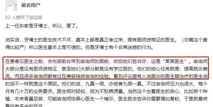 另有自稱為牙博士前員工的網(wǎng)友表示牙博士存在將沒有醫(yī)師資格證的包裝成“醫(yī)生”以提高就診費(fèi)用的行為。