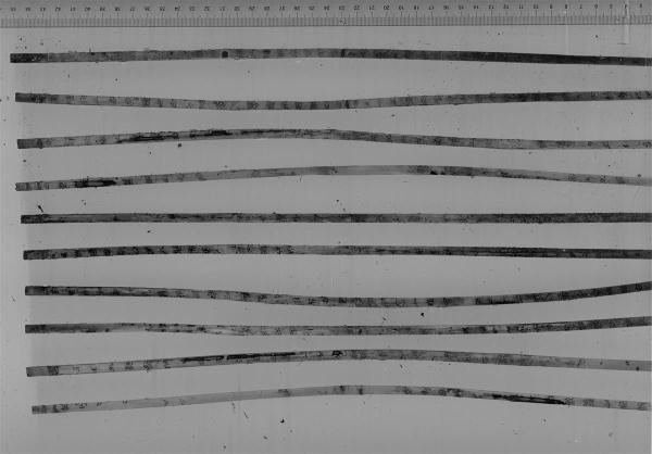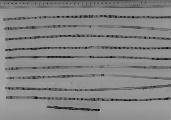 圖為:荊州胡家草場墓地M12出土西漢編年記簡紅外掃描照片