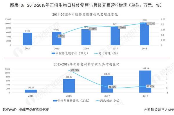 種植牙修復需要將種植體植入牙槽骨,若骨量不足,則種植體無法固定,大幅降低種植牙。目前人工骨修復已成為主流,通常配合口腔修復膜使用。國內(nèi)種植修復材料與種植牙數(shù)量高度相關(guān),據(jù)相關(guān)調(diào)研信息,約一半的種植牙患者需要植骨。當前國內(nèi)修復材料領域內(nèi)蓋氏占據(jù)70%份額,本土企業(yè)正海生物占10%。2018年正海生物口腔修復膜和骨修復材料分別實現(xiàn)銷售收入1.05億元和1119萬元,分別同比增長21.22%和33.46%,兩大產(chǎn)品增速均超過種牙植行業(yè)增速20%,隨著正海生物在修復材料技術(shù)方面持續(xù)突破,未來國產(chǎn)將有望替代進口。