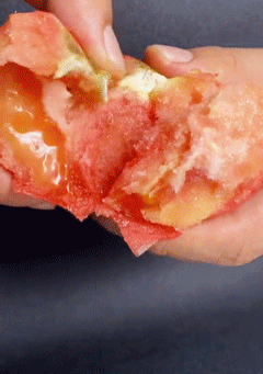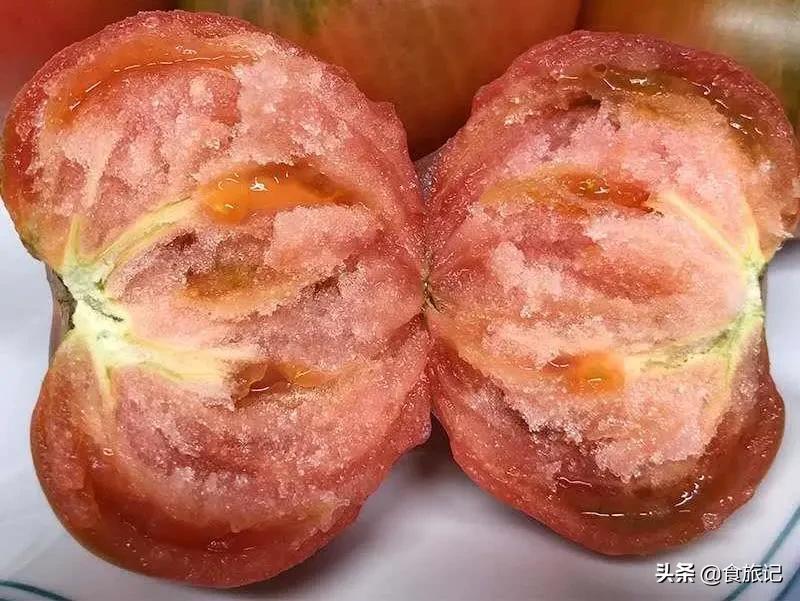 咬上一口,鮮甜汁水飚出,厚實(shí)的沙粒感在唇齒間徘徊。粉粉綿綿的,像是把西紅柿給含化了一般。