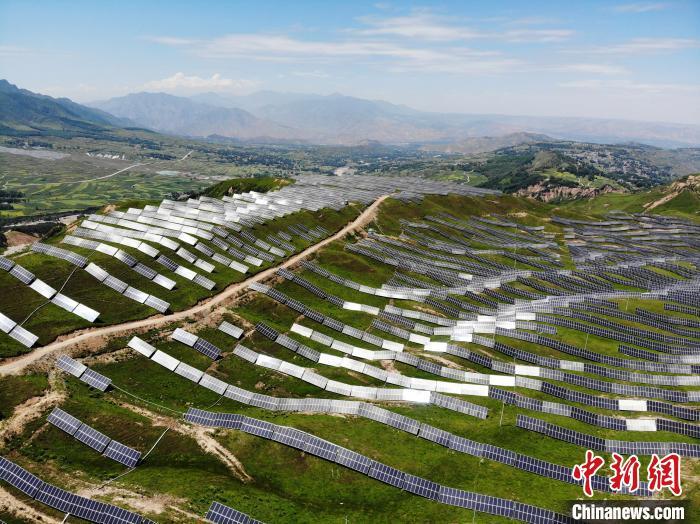 光伏電站除了發(fā)電還能變?yōu)椤梆B(yǎng)殖場(chǎng)”?季夏時(shí)節(jié),在甘肅臨夏州積石山縣海拔2500米的山坡上,一排排光伏電板如“鏡面”鑲嵌在綠草如茵的草地上,在陽光的照射下熠熠生輝。