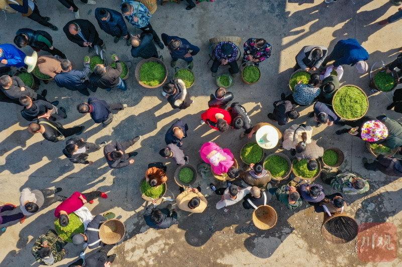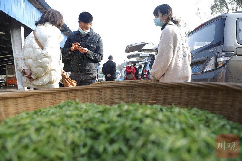 在宜賓市高縣,為規(guī)范早茶鮮葉交易,同時(shí)貫徹落實(shí)新冠肺炎疫情防控要求,占地1000余平米的縣級(jí)茶鮮葉臨時(shí)交易市場(chǎng)于2月8日正式啟用。目前有近20家茶葉收購商入駐,該縣40%的鮮葉都在交易市場(chǎng)銷售。據(jù)介紹,僅在開市當(dāng)天,縣級(jí)臨時(shí)交易市場(chǎng)的鮮葉交易量就達(dá)到了4400公斤,交易額超58萬元。一株株鮮葉經(jīng)采茶人之手,完成采摘后,進(jìn)入售賣、加工、包裝等環(huán)節(jié),終面向市場(chǎng)。