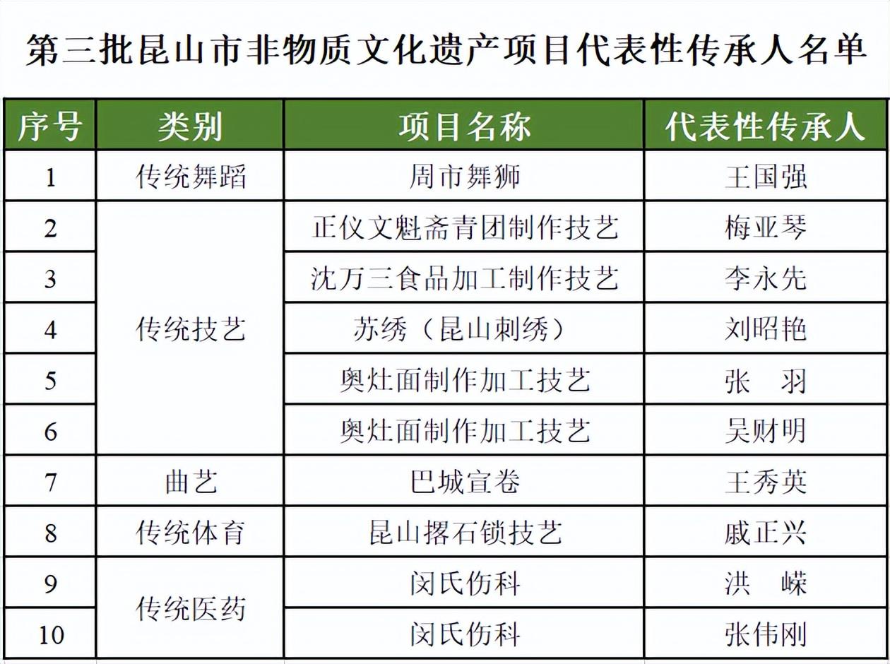 他們從事的項(xiàng)目涵蓋傳統(tǒng)舞蹈、傳統(tǒng)技藝、曲藝、傳統(tǒng)體育和傳統(tǒng)醫(yī)藥五大類(lèi)別。至此,我市各級(jí)非遺代表性傳承人增至47名,其中省級(jí)傳承人7名、蘇州市級(jí)傳承人10名、昆山市級(jí)傳承人30名。