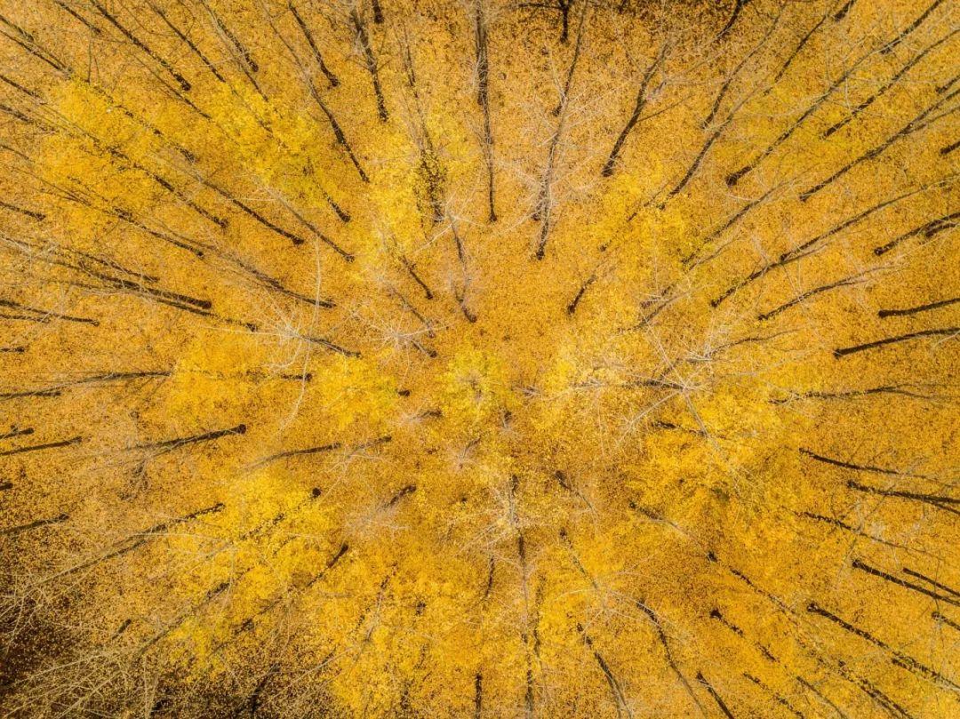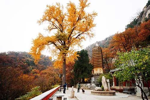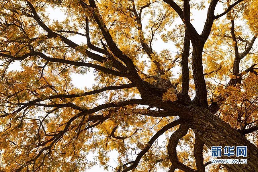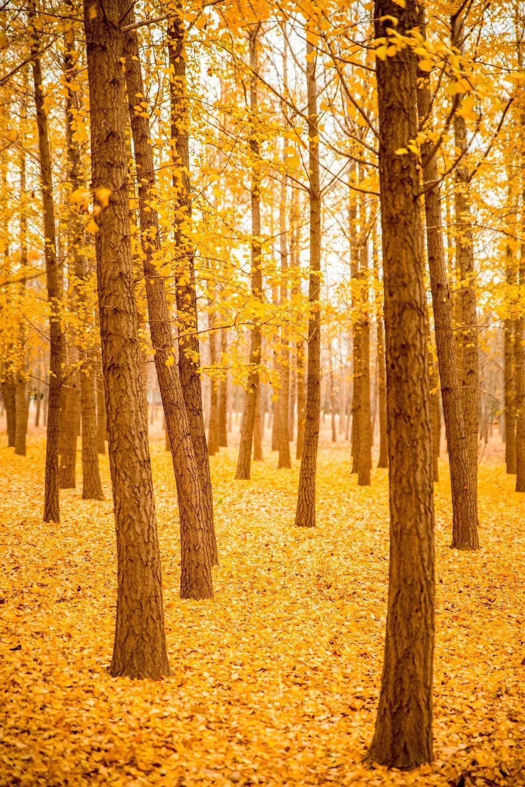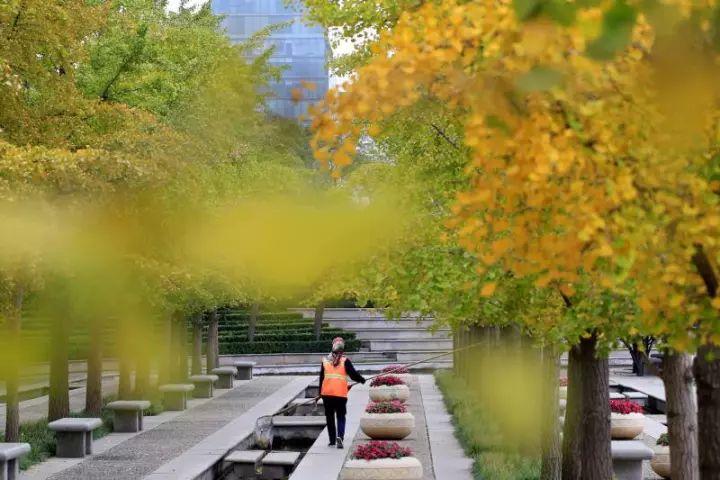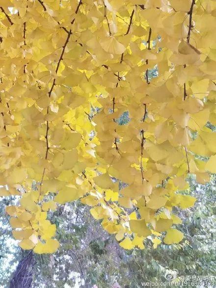 幾百株銀杏樹(shù)的樹(shù)葉變?yōu)榻瘘S色