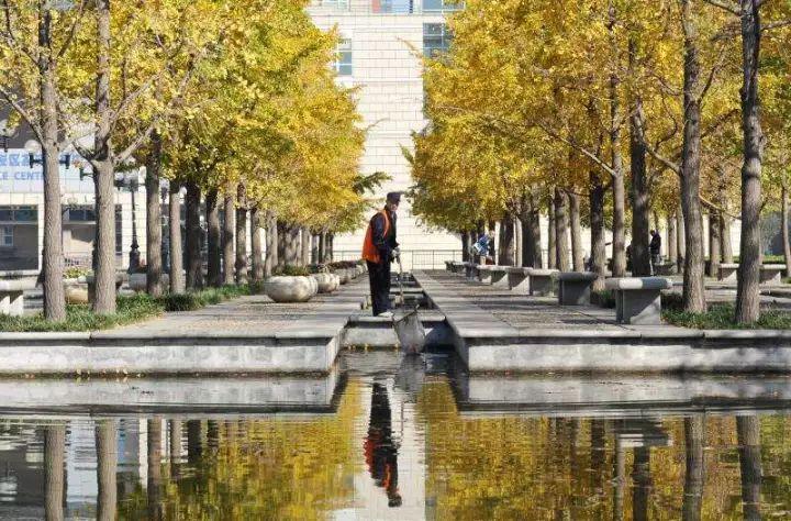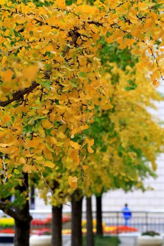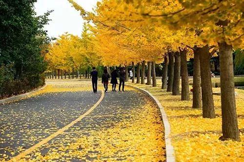 兩側(cè)的兩排銀杏樹(shù)形成一條"黃金大道"