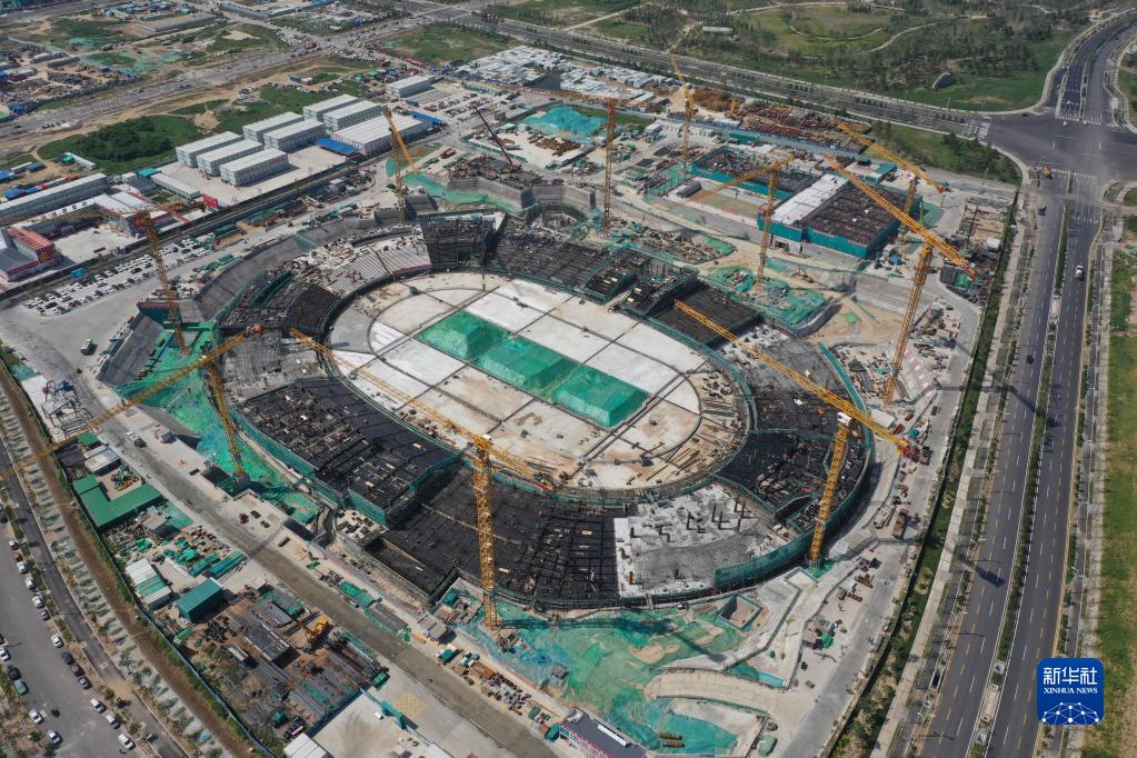 2022年9月1日拍攝的位于雄安新區(qū)啟動(dòng)區(qū)的體育中心項(xiàng)目建設(shè)現(xiàn)場(無人機(jī)照片)。