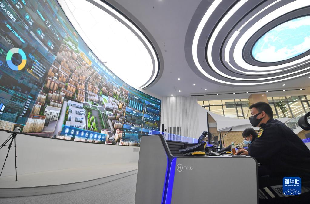 2022年3月29日,工作人員在雄安新區(qū)容東城市運(yùn)營管理中心監(jiān)管平臺(tái)工作。