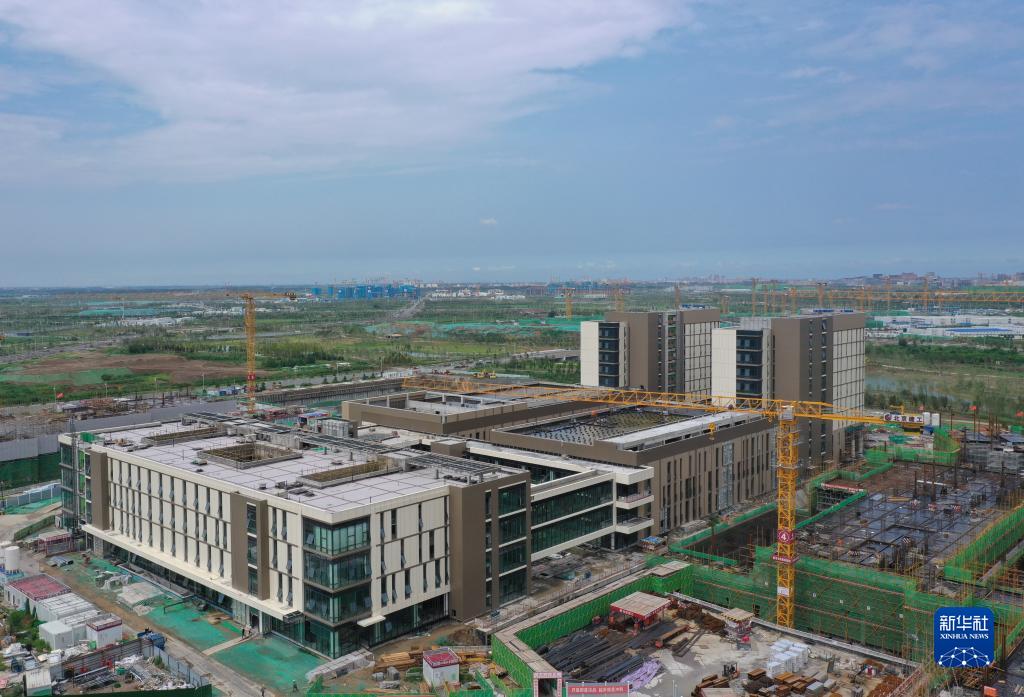 2022年7月29日拍攝的位于雄安新區(qū)啟動(dòng)區(qū)的雄安新區(qū)宣武醫(yī)院項(xiàng)目建設(shè)現(xiàn)場(無人機(jī)照片)。