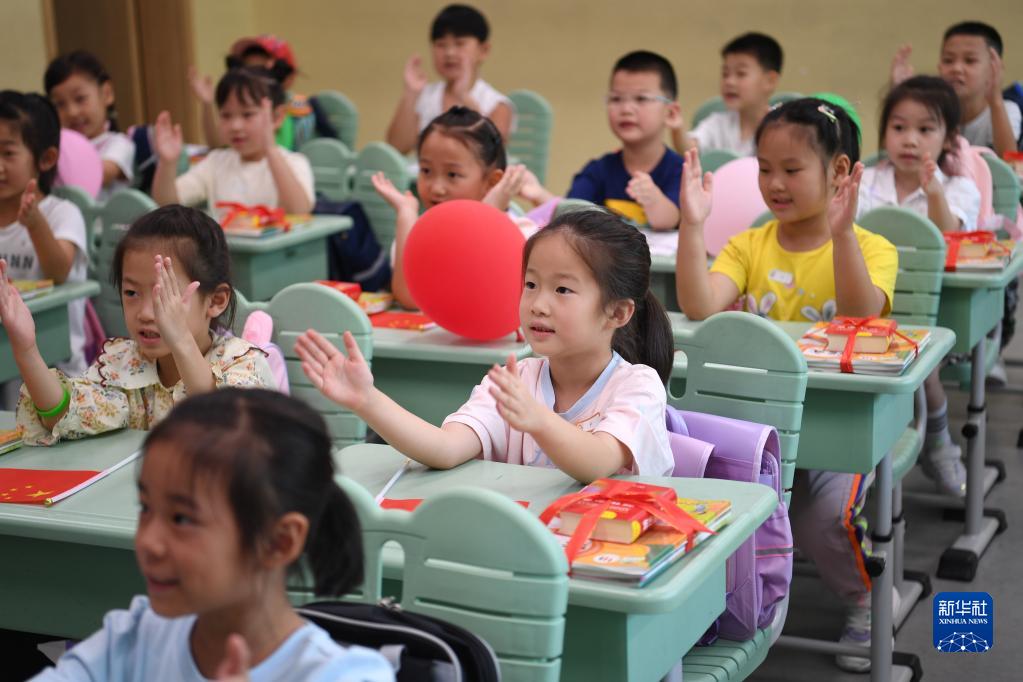 2022年9月1日,河北雄安新區(qū)容東片區(qū)容和悅?cè)菪W(xué)一年級(jí)新生在上開學(xué)第一課。