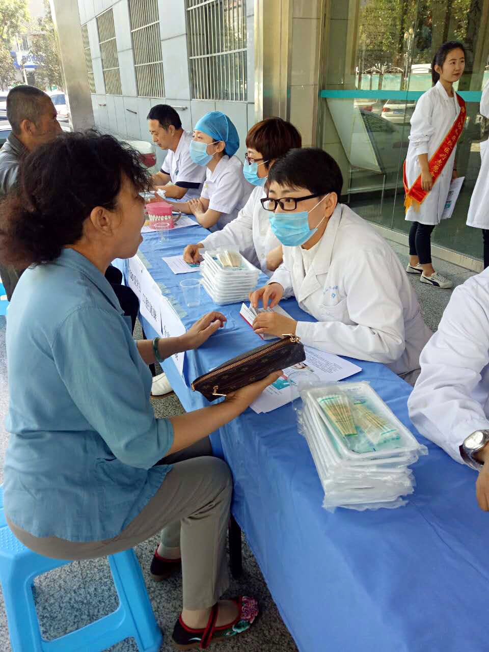 上午8點(diǎn),該院參加義診宣傳的醫(yī)生們便早早來(lái)到在口腔醫(yī)院門診樓前,擺放桌椅、檢查一次性器具情況和安放宣傳材料,為口腔健康咨詢、義診活動(dòng)做準(zhǔn)備。義診活動(dòng)中,口腔科專業(yè)醫(yī)師們認(rèn)真為每位群眾進(jìn)行免費(fèi)的口腔健康檢查,告知患有口腔疾病的患者應(yīng)如何進(jìn)行調(diào)節(jié),以及在日常生活中應(yīng)該怎樣做好口腔保健工作。