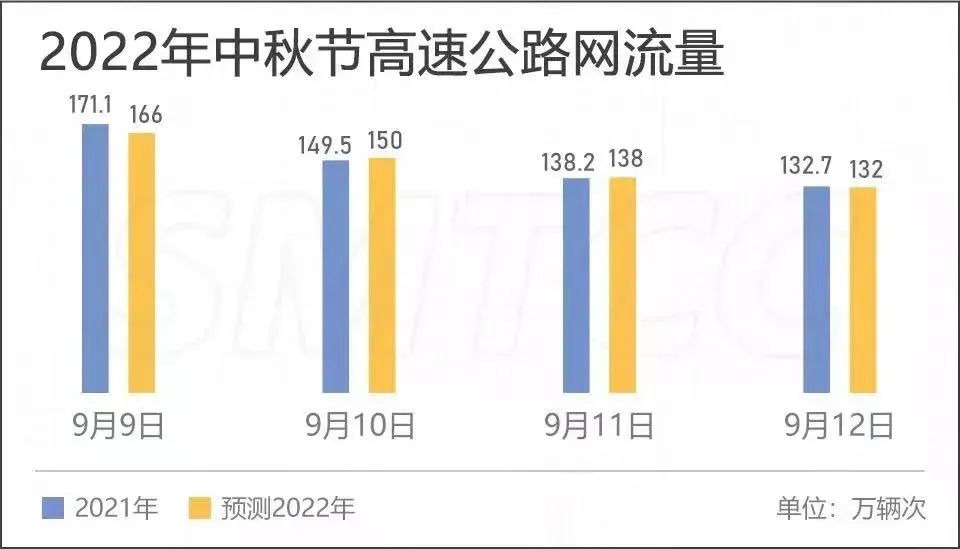 上海市交通指揮中心介紹,中秋期間,預計上海高速公路網(wǎng)車流規(guī)??偭窟_420萬輛次,日均流量約140萬輛次,與2021年同期基本持平,較常態(tài)周末上升15%。