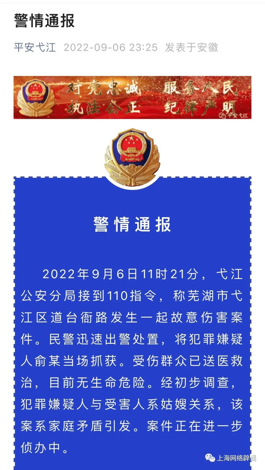 經(jīng)核查,該視頻攝于9月6日蕪湖市弋江區(qū)延安小學附近。9月6日晚間,蕪湖市公安局弋江分局已通過官方微信發(fā)布警情通報。