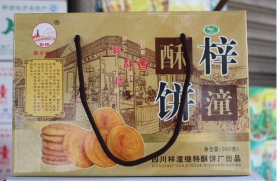 梓潼酥餅又名“薄脆子”、“貢餅”,是梓潼名特小吃,和梓潼片粉、鑲碗一起被稱為“梓潼三絕”。據(jù)史料記載:漢代司馬相如(字長(zhǎng)卿)與卓文君客居梓潼長(zhǎng)卿山司馬石室時(shí),常以酥餅伴酒吟詩(shī),有“金樽美酒香酥餅,相如彈琴醉文君”的詩(shī)句留傳至今。唐天寶年間,唐玄宗李隆基避安史之亂幸蜀,來(lái)到梓潼上亭鋪,夜雨聞鈴,思念已死的楊貴妃,以致茶飯不思,肝腸寸斷。當(dāng)?shù)?以酥餅貢奉,玄宗皇帝一品嘗,贊不絕口。