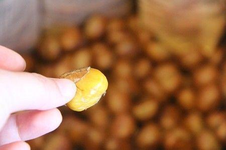 栗子的色澤是暗黃的,吃起來有些硬,不過香中帶甜,軟糯適中。