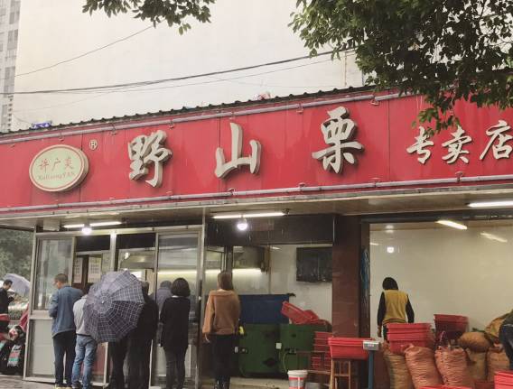 門口聚集著等候新鮮栗子出鍋的群眾,隊伍不長,三三兩兩,走一波來一波,其中不乏抱在懷里的嬰兒以及年邁的老大爺,但大家都心甘情愿地等待,就為吃這一口栗子!