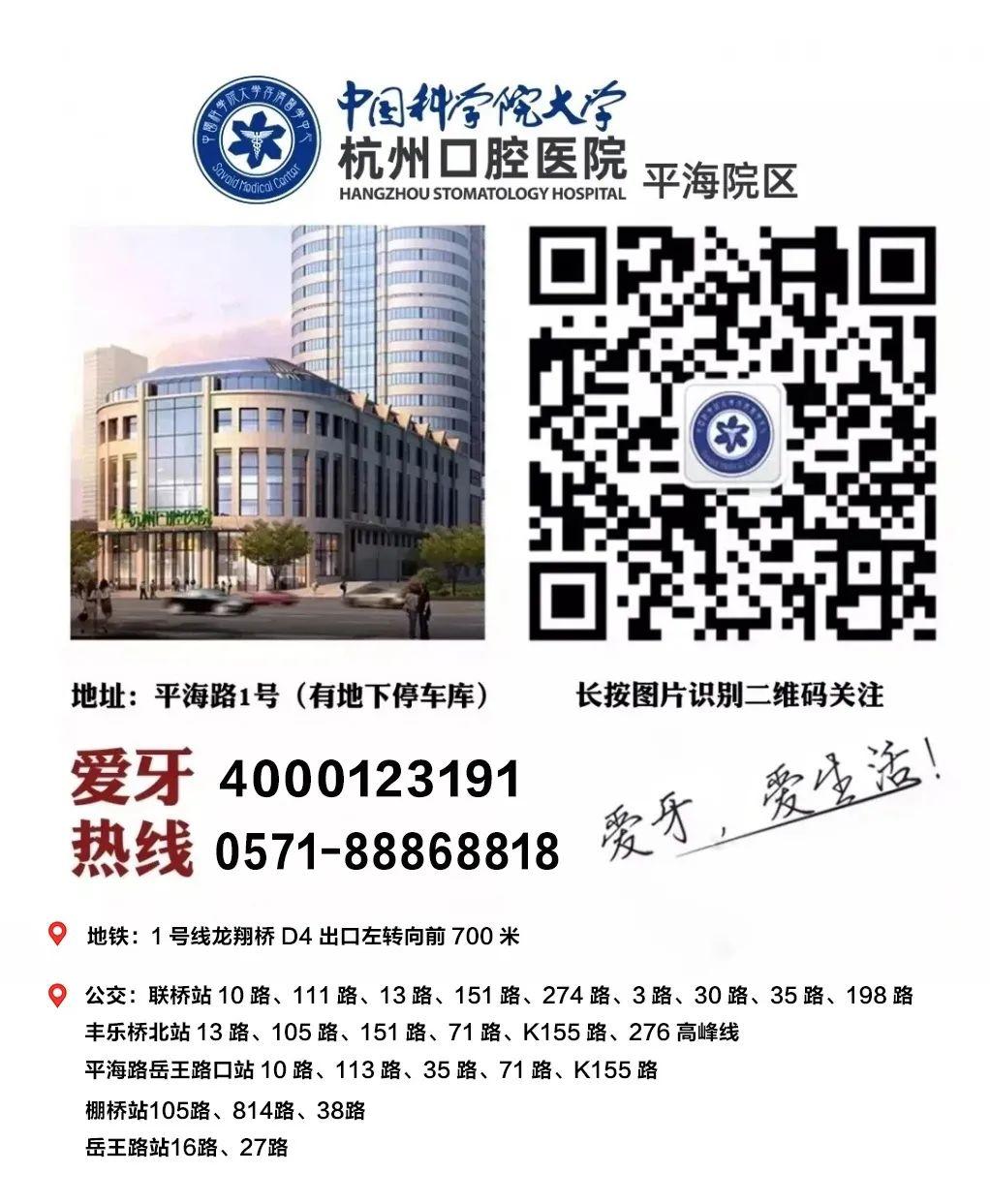 更多優(yōu)惠可咨詢4000-123191,或關(guān)注【杭州口腔醫(yī)院平海院區(qū)】微信公眾號(hào)。