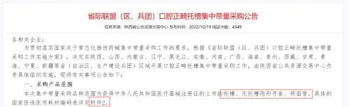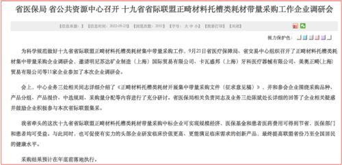 9月21日,陜西省公共資源交易中心就曾發(fā)布消息:陜西省醫(yī)保局、省交易中心組織召開了正畸材料托槽類耗材集中帶量采購企業(yè)調(diào)研會,召集了11家相關(guān)企業(yè)參加了本次企業(yè)調(diào)研會。