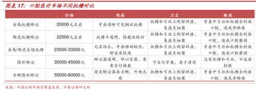 正畸整體費用中,耗材費用大致占30%(市面上常見的矯正器主要是傳統(tǒng)固定矯正器和無托槽隱形矯正器,花費分別約為2-3萬元和4-6萬元),調(diào)節(jié)費用占比較高。據(jù)太平洋證券分析,正畸調(diào)節(jié)費用中診療費用占比超過50%。