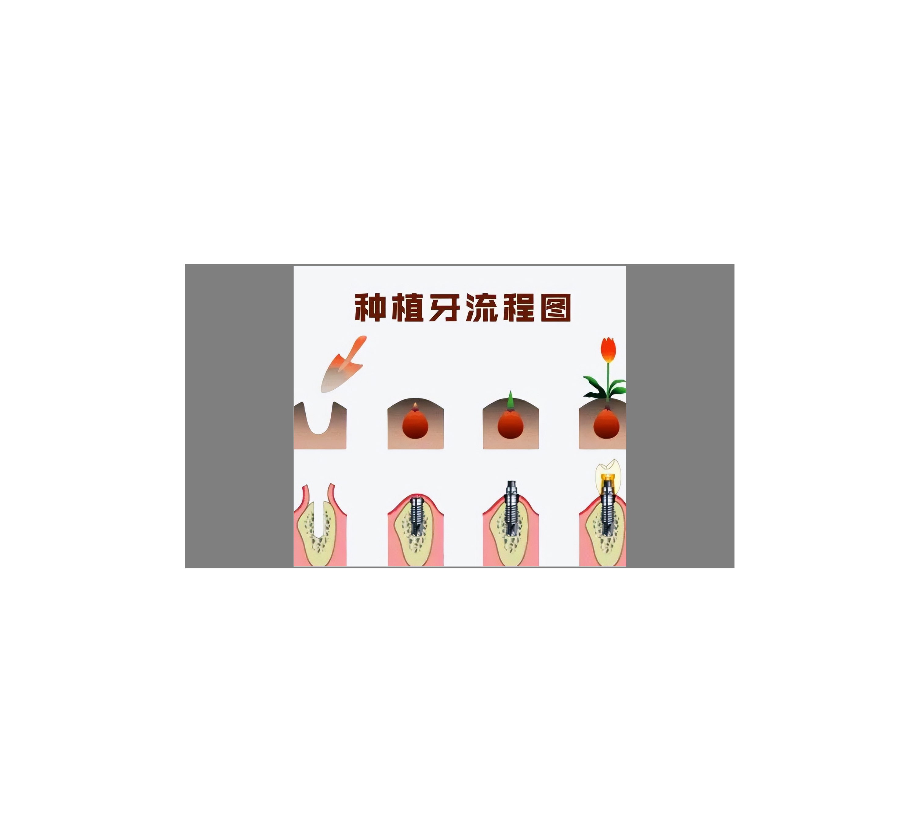 種植牙,大的特點(diǎn),就是在牙槽骨埋入金屬金屬種植體(人工牙根),等種植體與牙槽骨良好結(jié)合后,再在種植體上固定上人工牙冠,讓患者重新“長出”一顆牙齒。