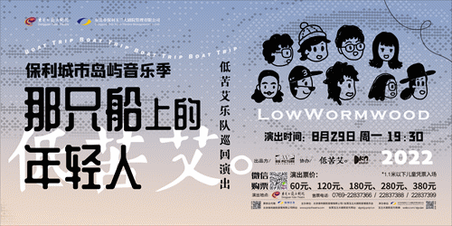 【100元優(yōu)惠票】8月29日保利城市島嶼音樂季《那只船上的年輕人—低苦艾樂隊巡回演出》,低票價除外;