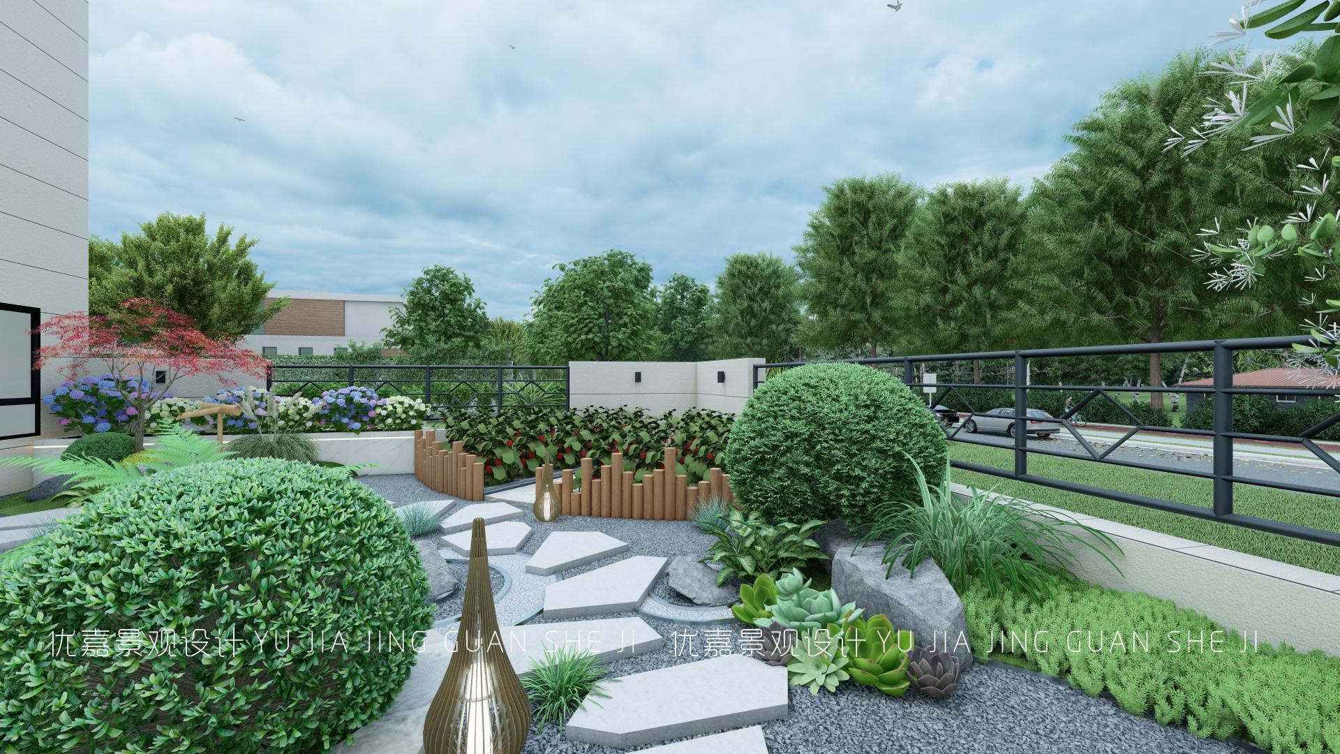地面打造礫石汀步鋪裝,地面兩側(cè)設(shè)計(jì)采用紅楓搭配水缽和小草丘的禪意造型,強(qiáng)調(diào)的整體區(qū)域的趣味性,走在每個(gè)汀步石上都可以欣賞到不同角度的景色,自然愜意。