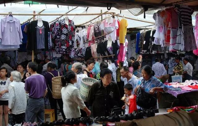 集市上的服裝攤,賣的不是牌子,價格便宜