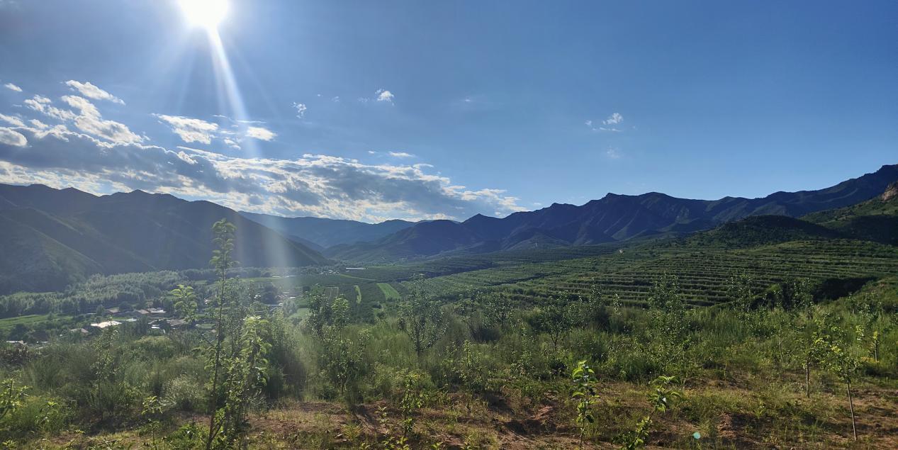 7月末,正是蘋果花芽分化的關(guān)鍵時(shí)期,這時(shí)花芽分化的情況,決定著明年蘋果的成果質(zhì)量。在小城子鎮(zhèn)八家村的小城子鎮(zhèn)萬(wàn)畝林果產(chǎn)業(yè)園觀景臺(tái)上,能看到一棵棵蘋果樹一圈圈圍住一座座小山。