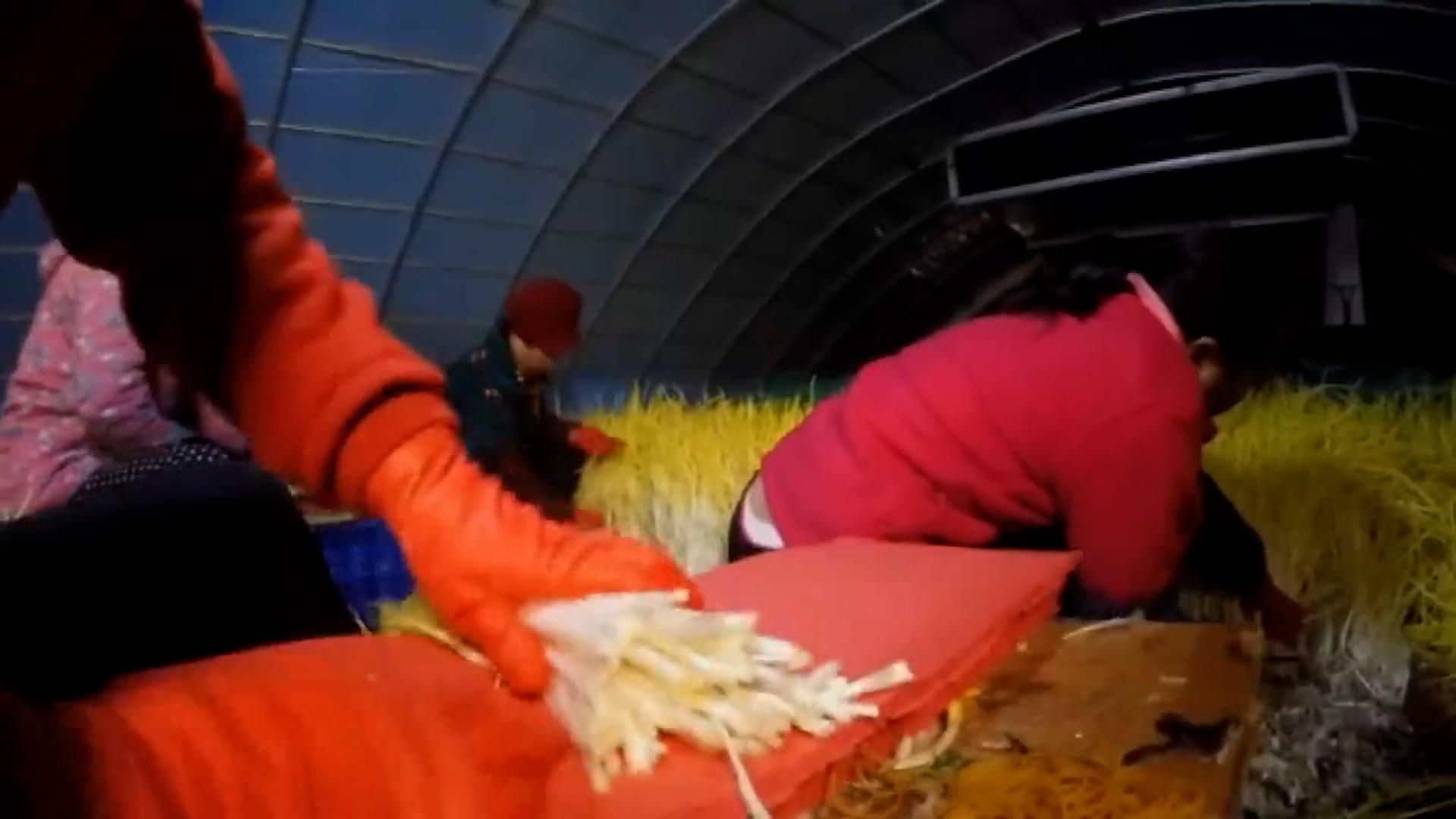 這個(gè)正在夜色下忙活的男人叫王勝輝,是定州人,他的工作只能在晚上進(jìn)行。為了防止這些植物見光,他建造了一個(gè)無光的生長(zhǎng)環(huán)境。這些植物要在黑暗的環(huán)境下待夠22天,才可以采摘,而采摘后的植物也要避免與陽光的接觸,然而就是靠著這種植物,王勝輝一年狂賺1000多萬元。