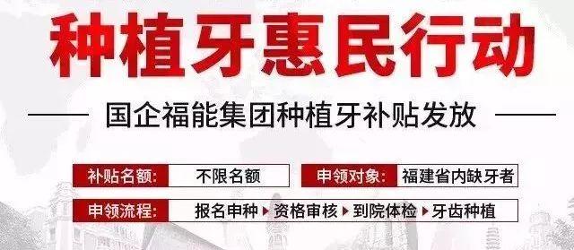 為響應(yīng)健康福建2030計(jì)劃,發(fā)揚(yáng)國(guó)企責(zé)任使命擔(dān)當(dāng),提升大家愛牙護(hù)齒健康意識(shí),及時(shí)修復(fù)缺失牙,“福建省愛牙工程”公布了“種植牙惠民補(bǔ)貼領(lǐng)取通知”!同步啟動(dòng)“拯救問題牙”假牙收購(gòu)計(jì)劃,凡存在牙齒缺失、松動(dòng)的市民,均可按程序申領(lǐng)福能集團(tuán)缺牙專項(xiàng)補(bǔ)貼金!