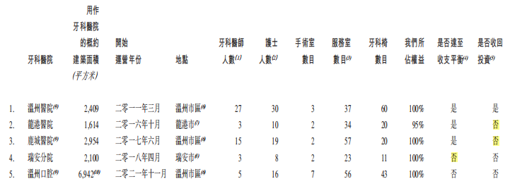 龍港醫(yī)院成立于2015年8月,2016年10月開始運(yùn)營;鹿城醫(yī)院成立于2016年6月,2017年6月開始運(yùn)營;瑞安分院成立于2017年11月,2018年4月開始運(yùn)營。中國口腔醫(yī)療此前曾在招股書中表示,“開辦新的牙科醫(yī)院通常大約需要四年方能達(dá)到收支平衡,約需要七年才能收回初始投資?!边@也意味著,龍港醫(yī)院和鹿城醫(yī)院即將到達(dá)收回初始投資期,瑞安分院即將到達(dá)收支平衡期,但據(jù)其招股書披露,龍港醫(yī)院和鹿城醫(yī)院尚未收回初始投資,瑞安分院也尚未實現(xiàn)收支平衡。