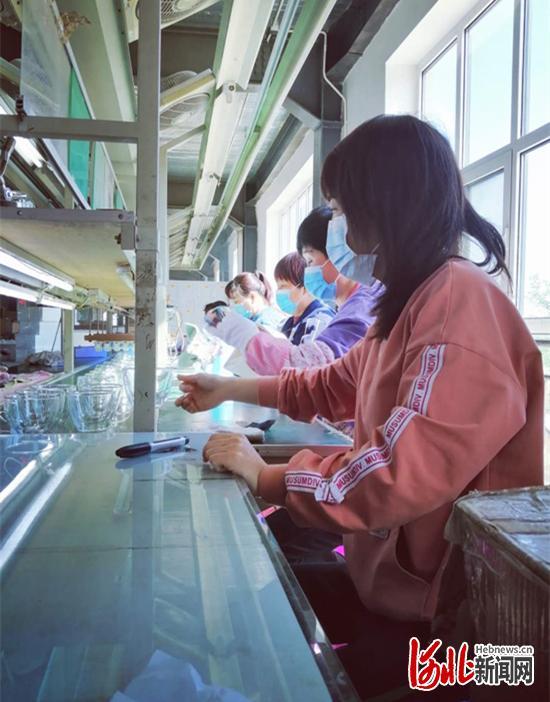 河間永華匯玻璃制品有限公司,質(zhì)檢部工人在檢查產(chǎn)品質(zhì)量。李世文攝