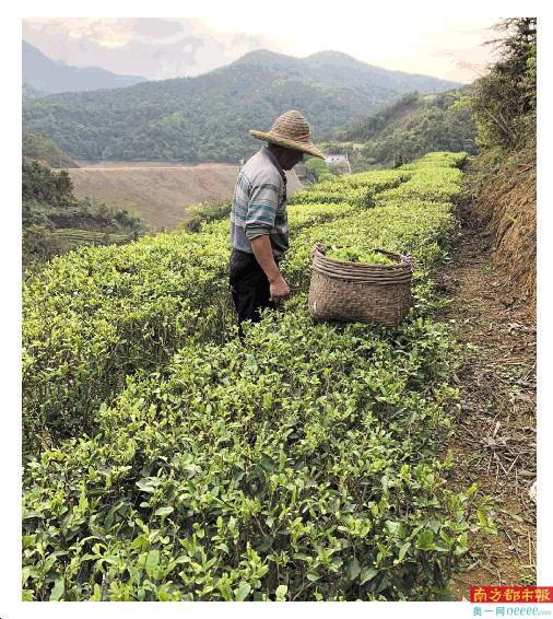 一條溪流從山谷穿過,工人們正在對(duì)面山上采茶。朋伯帶領(lǐng)南都記者驅(qū)車爬上山腰,然后下車參觀茶園。