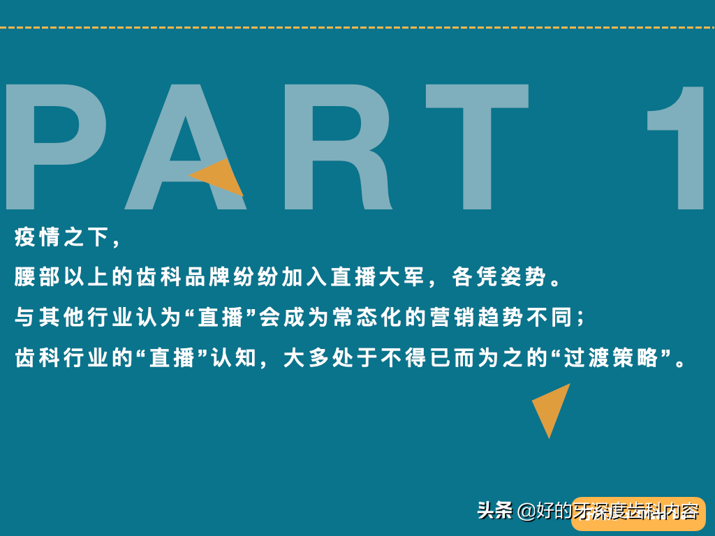與其他行業(yè)認(rèn)為“直播”會(huì)成為常態(tài)化的營(yíng)銷趨勢(shì)不同;齒科行業(yè)的“直播”認(rèn)知,大多處于不得已而為之的“過渡策略”。